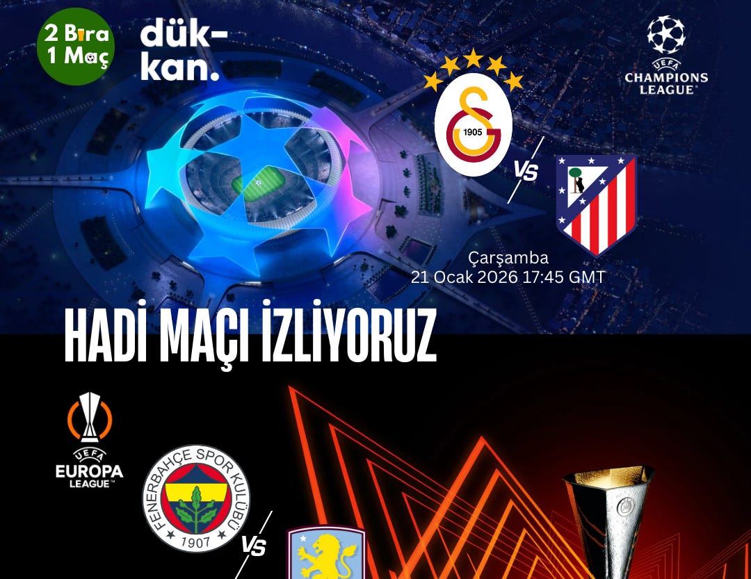 Galatasaray - Atletico Madrid ve Fenerbahçe - Aston Villa maçlarında beraberiz...