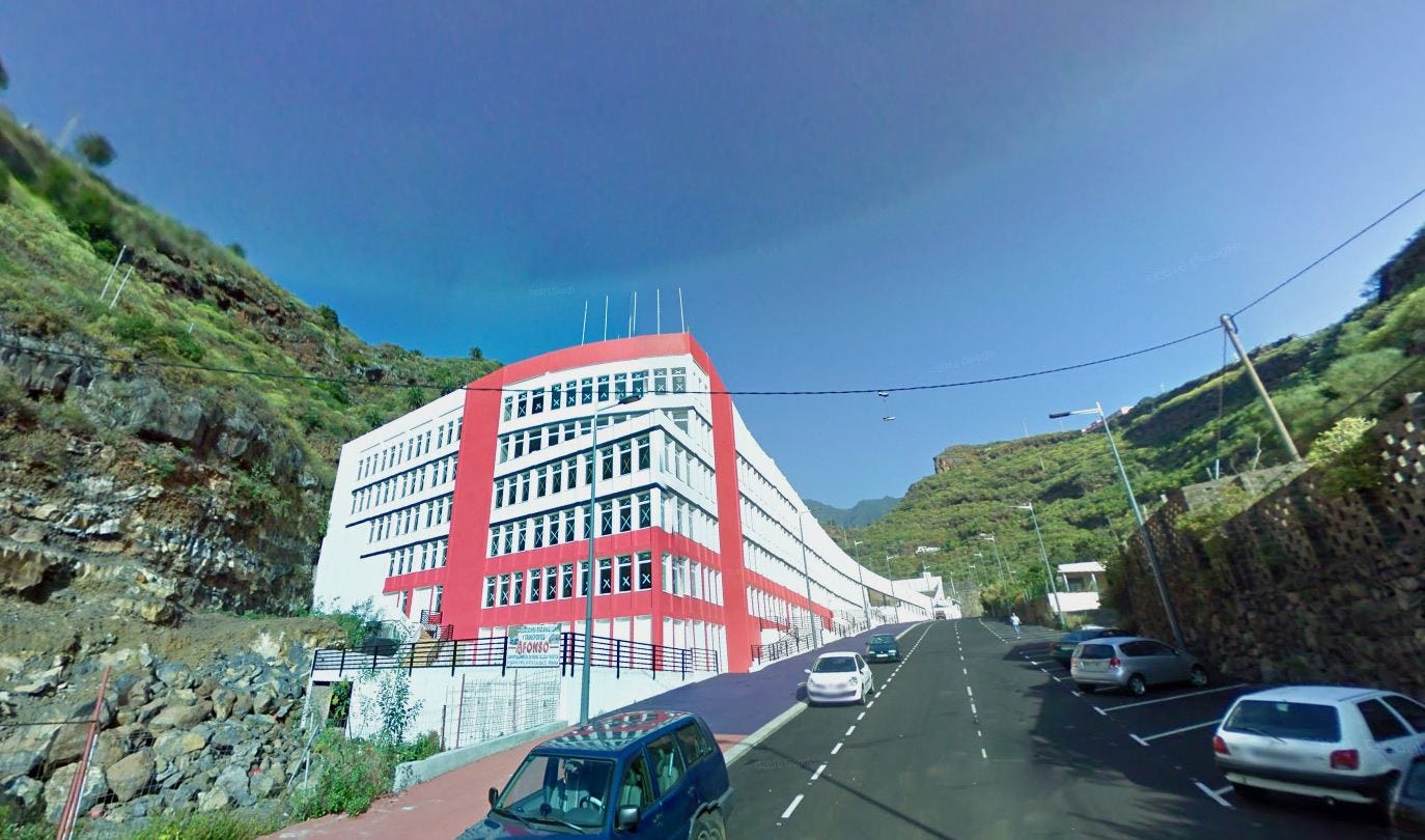 Bir önceki stadyumda rakım değiştirmiştik şimdi iyice Güney’e inmenin vakti geldi. La Palma’da futbol sahası aramak için düz bir alan beklersen hayal kırıklığına uğrarsın. Ada baştan aşağı eğimlidir; vadiler, yamaçlar ve ani yükseltilerle doludur. Nuevo Estadio Silvestre Carrillo da bu coğrafyanın öz evladı gibidir, yükseltiyle bir olmuş gibi durur. Bir yamaca yaslanır, hatta biraz da ona tutunur. Yoldan bakıldığında heybetli bir belediye binası gibi görünse de işin aslı tam olarak öyle değil.