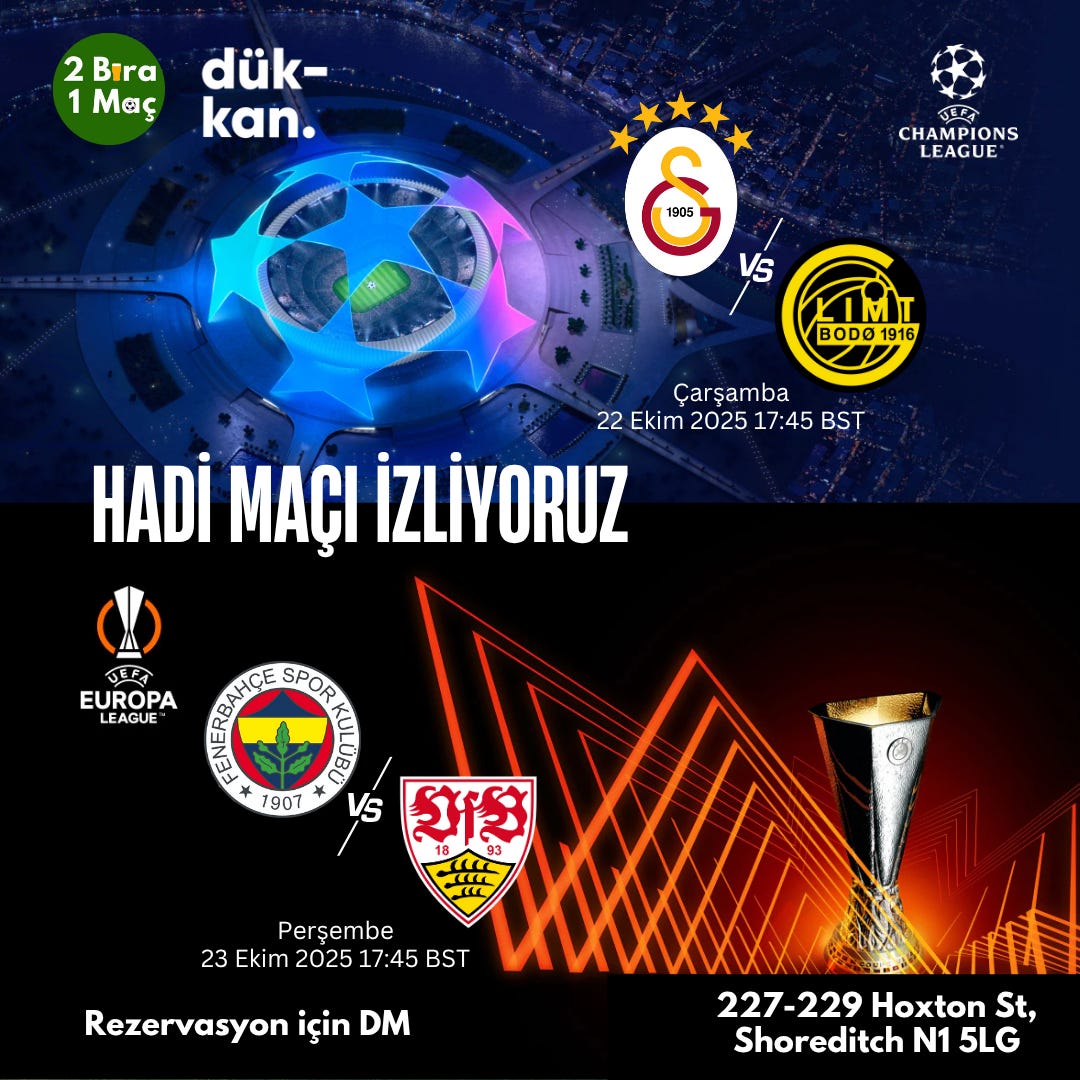 Galatasaray ve Fenerbahçe'nin Avrupa maçlarını hep birlikte Dükkan'da izliyoruz.