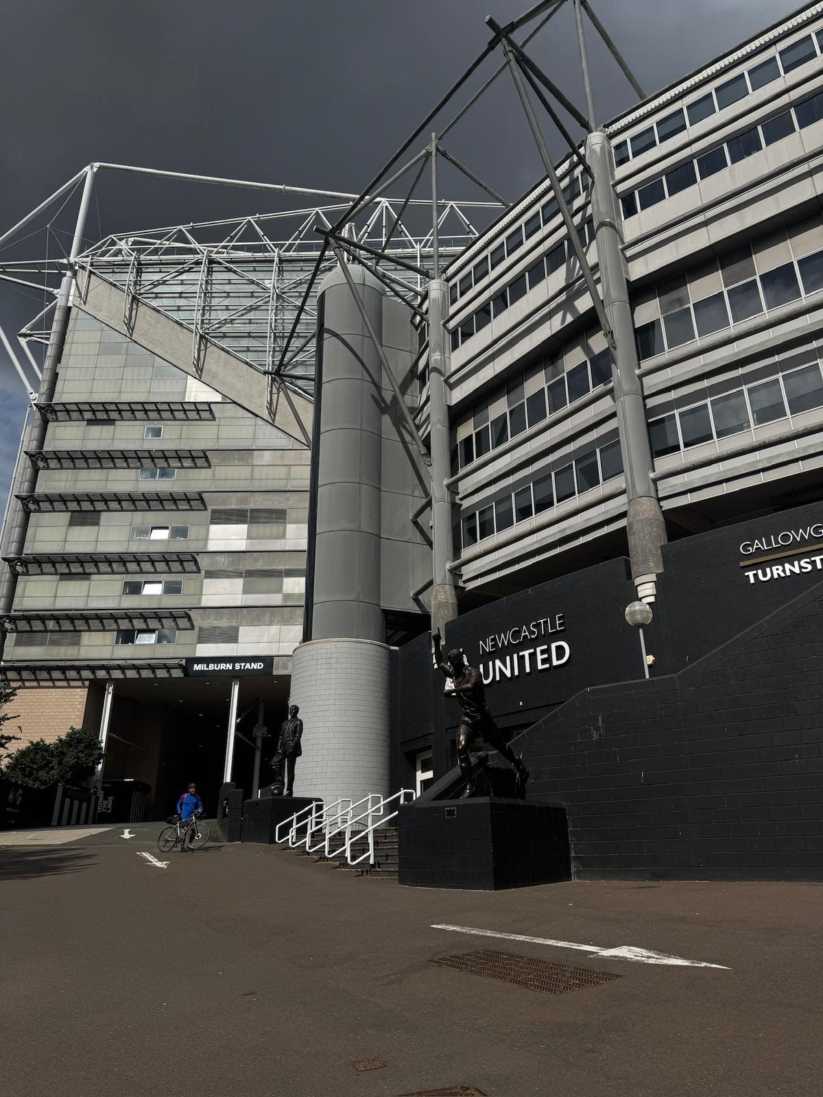 Bir sonraki duran St. James’ Park ve Shearer’ın pub’ıydı. Bugün futbolu izleyeceğimiz yer 'Işık Stadyumu’ (Stadium of Light) olsa da St. James’ Park’ı da pas geçemezdik. Plan etrafı kolaçan edip, hızlıca bir öğle birası içerek pub ve stat çevresi turumuzu tamamladıktan sonra Sunderland’e geçmekti. Stadyuma yaklaşırken dükkanlar bir anda siyah-beyaz renklere bürünmeye başlamıştı. Newcastle takımı için önemli zaferlerin kült anlarının basıldığı posterler, eski oyuncuların isimlerini taşıyan sokak tabelaları.. Hedefimize yaklaştıkça yoğunluğu artan bu dükkanların sonuncusunu geçer geçmez karşımızda tüm haşmetiyle duruyordu Magpies’ların mabedi.